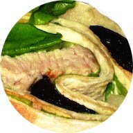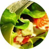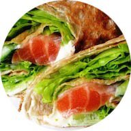 Хэлси Фиш +Бездрожжевая лепешка, салат, филе семги , огурец свежий, соус из сыра дор блю и сливок